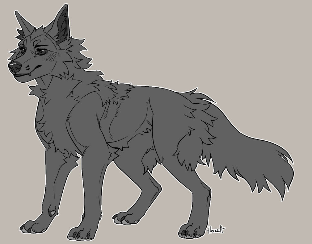 He is slightly muscular, some muscle detail is visible through his fur in certain places, however it should not be overdone, he is of an average build, leaning on the slimmer side usually.